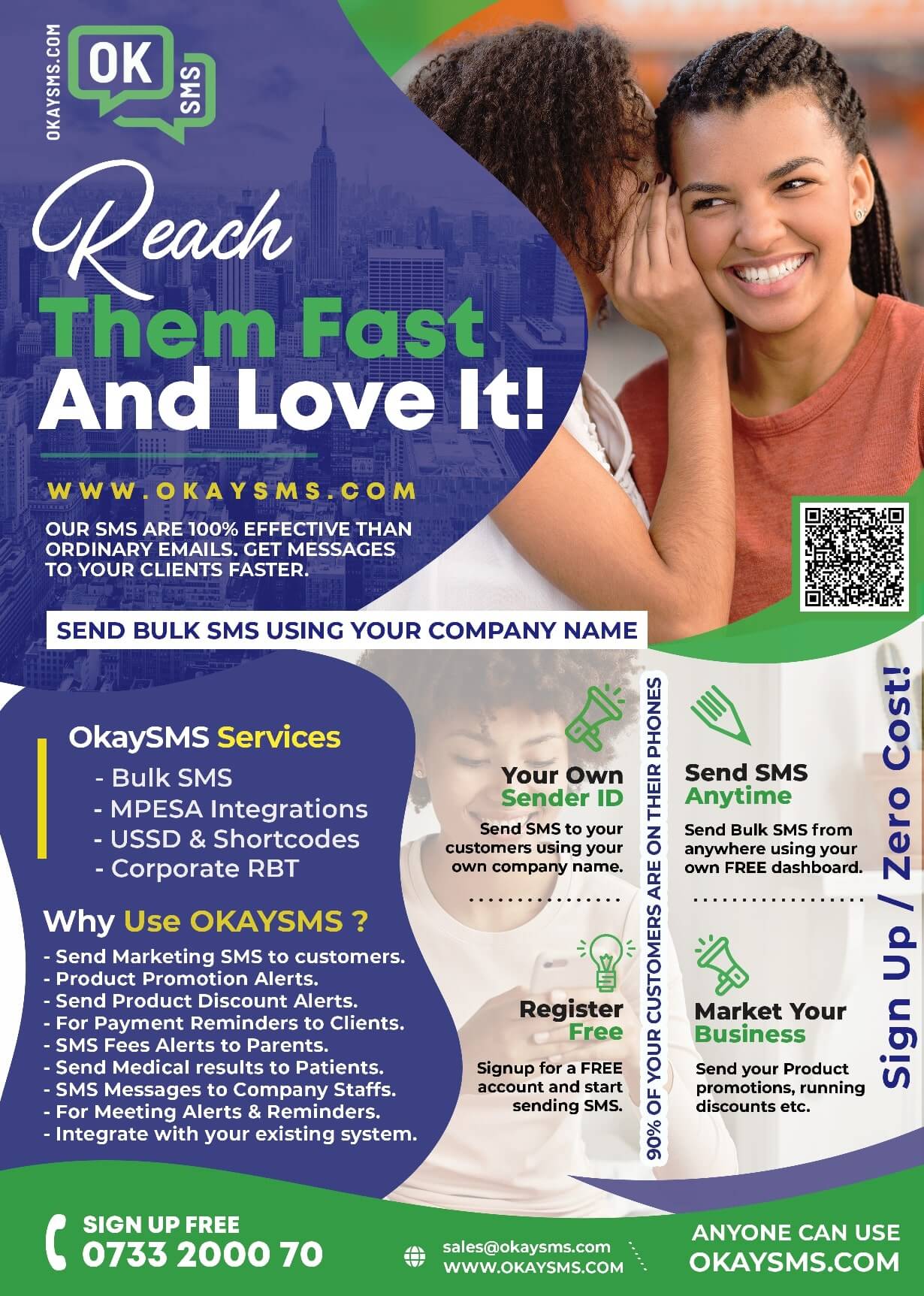 Reach thousands of customers instantly with OkaySMS Bulk SMS with Sender ID. Our Bulk SMS service is engineered for scale and simplicity.Branded Bulk SMS